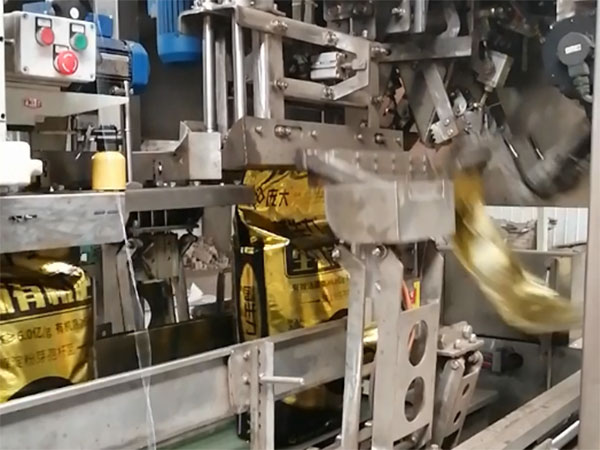 全自動小袋包裝機和機械手裝車機聯合作業的優